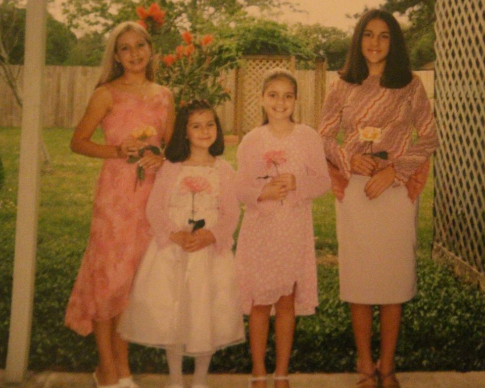 My sisters, my cousins and I always played "school" when we were little. Another thing we used to act out was the mass. We used to use the stairs as "pews" and we even used Kool-aid and bread as the blood and the body. We just couldn't get enough!