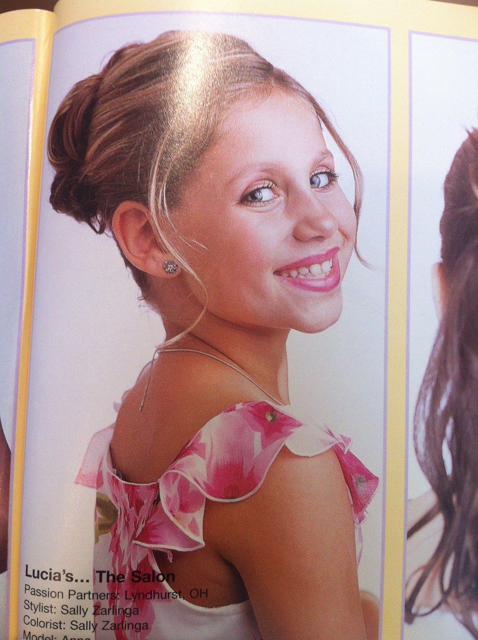 During grade school, i would have birthday parties at the salon and every social event was planned around a spa day for me and my adolescent gal pals. Anytime the school had an auction or event, you could bet money that one my parents was auctioning off hair products or free haircuts, unlike the other parents who donated golf clubs and bottles of wine. The parents who showed up in their polos and khakis felt underdressed when my parents walked in head-to-toe in black always dressed like they are going to a high class social event (or the club). Anyone that can stand behind the chair for 12 hours a day with four inch heels on is my hero. While all my friends took sick days during school, I would take “sick days” to go to New York and walk up and down the aisles of large hair shows and conventions with my mom. My "model career" started early when I became a hair model for those generic hair books in the waiting area of salons. *insert embarrassing photo of me*