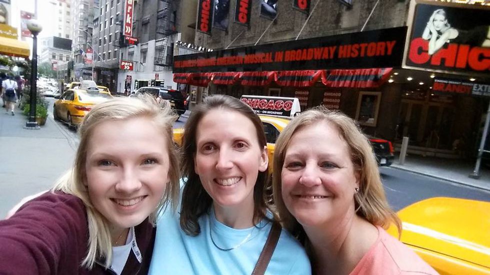 My Mom and Stepmom are actually on great terms too. The two of them drove me to New York together, have stayed in hotel rooms with me for college auditions and sat next to each other at some of my shows. My dad finds it funny that when the three of them come to visit me in Pittsburgh, they all save money by sharing one hotel room. When dropping me off in New York, all of my roommates had thought that the two of them were lesbians because of how motherly they both were towards me and how well they got along.