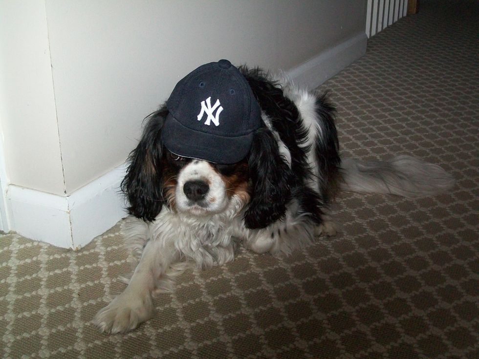 Another one of our infamous photoshoots. Little Holly thought she was super clever for putting a Yankees hat on her dog named Jeter. This poor dog (along with my first dog, Truffles) put up with so much between me and my sister. Hats, dresses, stickers, sunglasses, etc. You name it, they probably wore it!