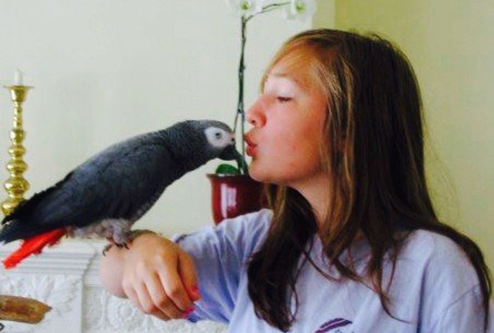 While many of my friends growing up had dogs, cats and hamsters as pets, I was the odd one with parrots (yes, multiple). My parents have had our African grey, Sluggo and green-winged macaw, Poppi, longer than my brother and I which equates to 25 plus years. I got my cockatiel, Piña, when I was 12. Sluggo, Poppi and Piña are the birds we've had the longest, and they're as much a part of the family as my brother and I. We've had other birds over the years as well, including four yellow-headed amazons, Yo-yo, Chola, Tina and Spanky (don't ask me where those names came from... I'm only responsible for naming Piña [Spanish for pineapple], which I thought was appropriate since she truly does resemble a pineapple with the hint of yellow in her feathers and funny-looking crest that stands upright on top of her head).
