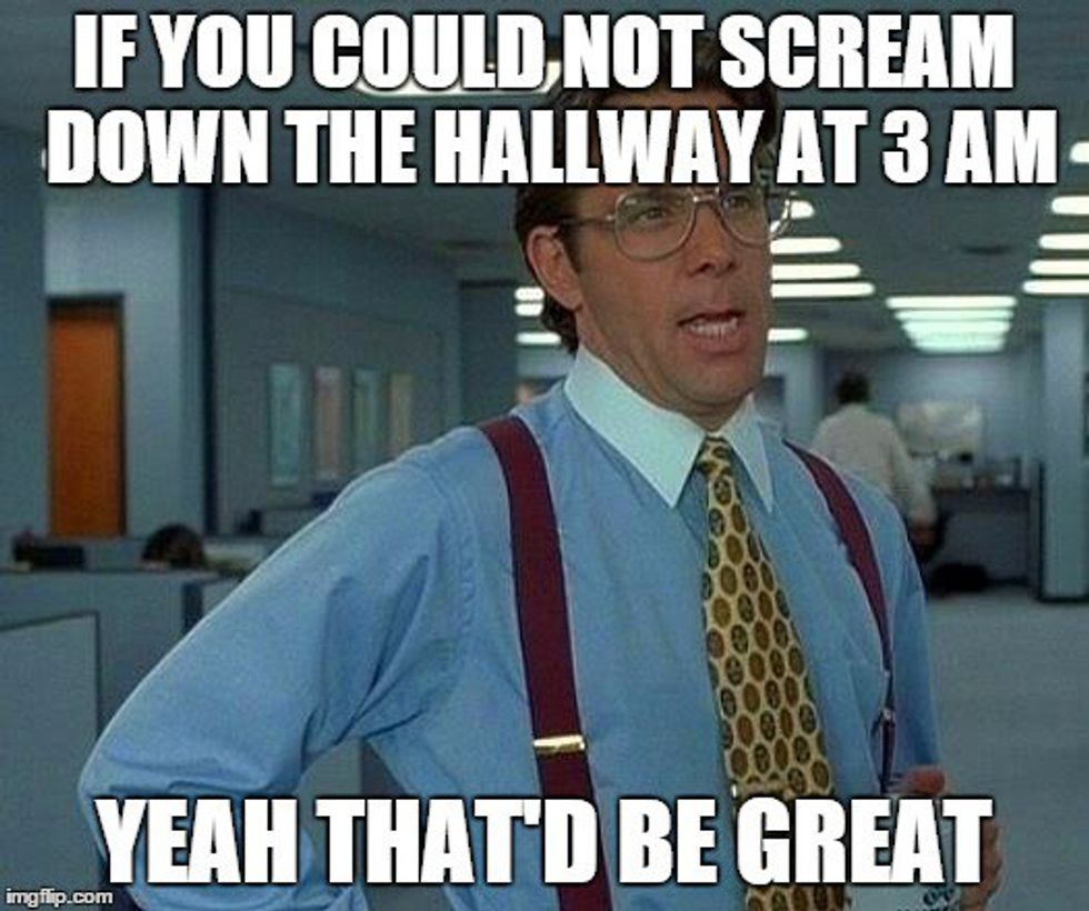 Yes, I know you've heard that campuses have these so called quiet hours which are strict and followed. That is false. RA's or resident assistants don't care. If the room next to you wants to watch Family Feud on the highest volume while also laughing hysterically at Steve Harvey, after 10 p.m., she will. If the entire swim team wants to bombard the hallway with screams and obnoxious laughs, they will. I repeat again, quiet hours are a myth.