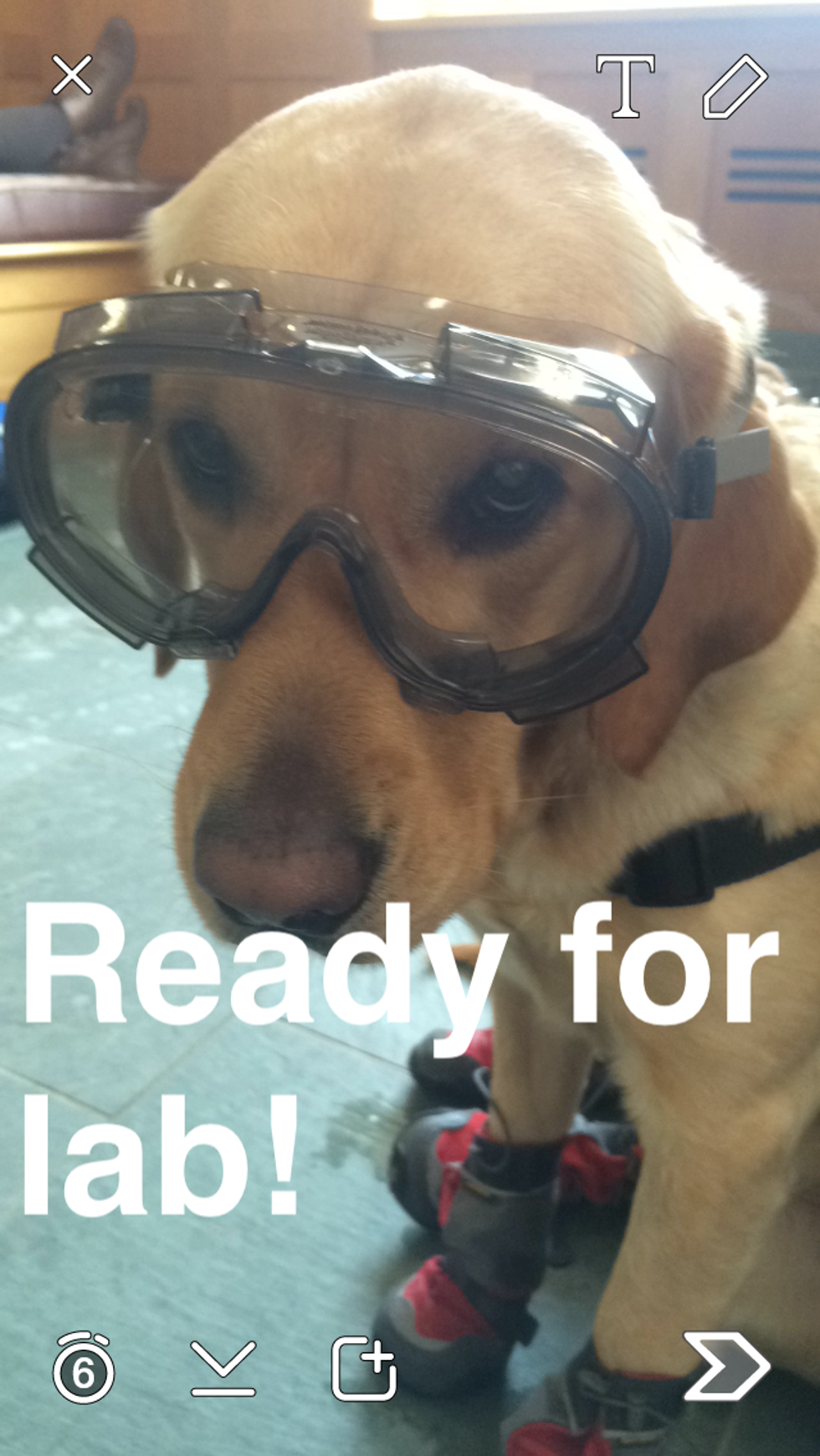 Well that depends. When Smidge is working the answer is no. When I am walking around in public with Smidge in harness that indicates she is working. When Smidge is working she has one job to do: guide us safely from point A from point B without getting distracted. Distractions can be very dangerous for a guide dog team, so I ask respectfully that if Smidge is working people should ignore her. I understand that this can be really difficult— she really does have some heart- wrenching puppy dog eyes— but this is a very important rule. When she is out of harness though I usually allow her to say hi to people, so feel free to ask. Many service dog handlers follow different rules about petting their dogs so it is always a good idea to ask beforehand.