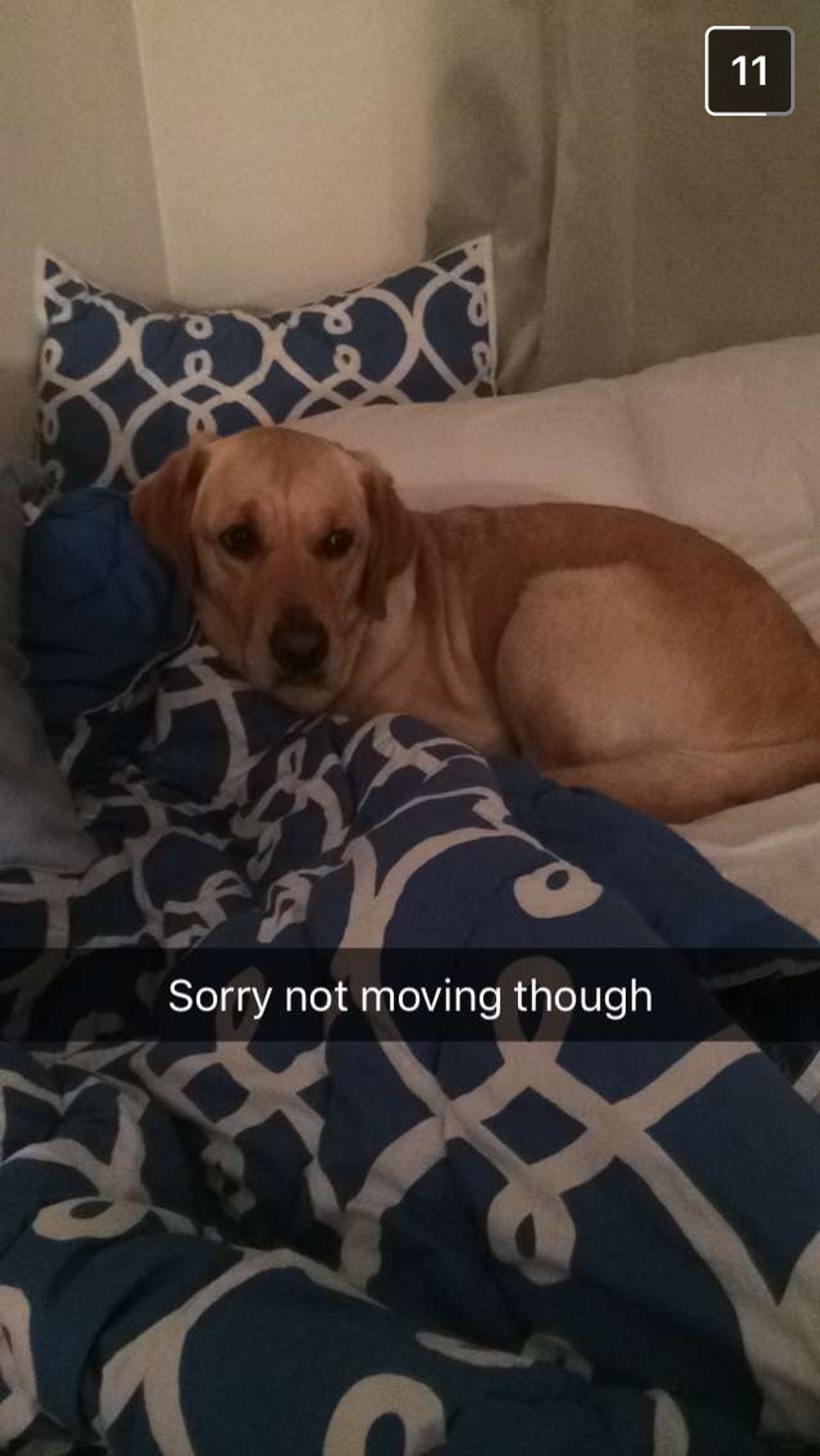 I always find this question to be a little comical. Where else would smidge live? Yes, smidge lives in my room with me and my lovely roommates. She has her own dog bed underneath my bed and I am pretty sure everyone agrees she is the messiest roommate. She sheds way too much!