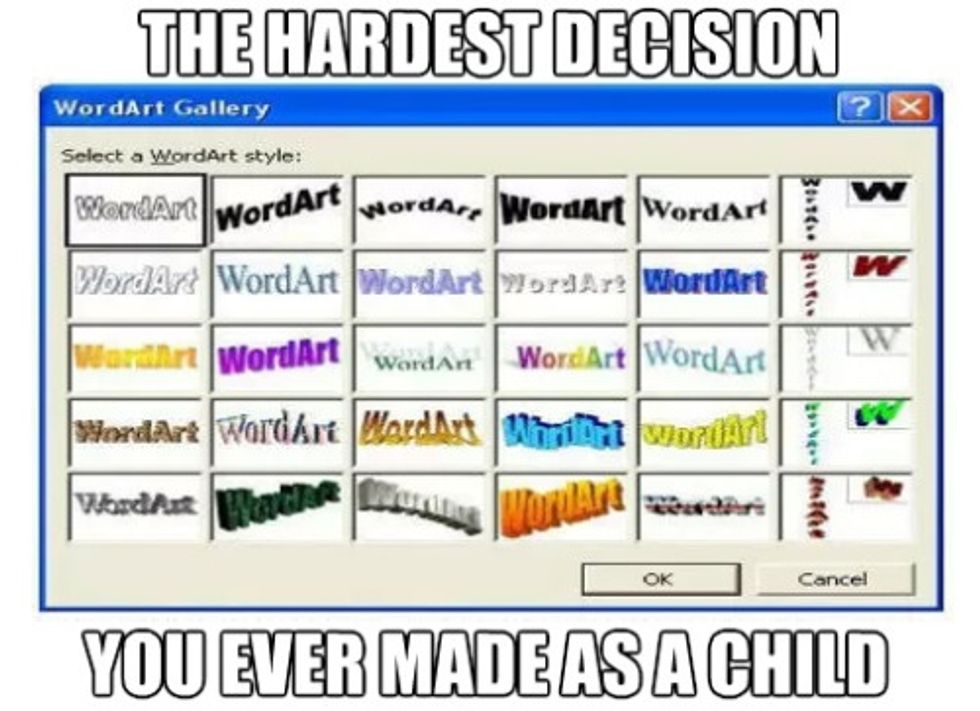 PowerPoints are a natural part of our lives as college students. You're probably an expert slideshow creator by now with the ability to throw together a 10-slide presentation for that speech you forgot about an hour before class starts. But do you remember your early days of PowerPoint in fourth or fifth grade when making a presentation was a form of entertainment rather than a chore? Or when you and your classmates had an unspoken competition to see who could cram the most interesting graphics onto their slides whenever presentation days rolled around?