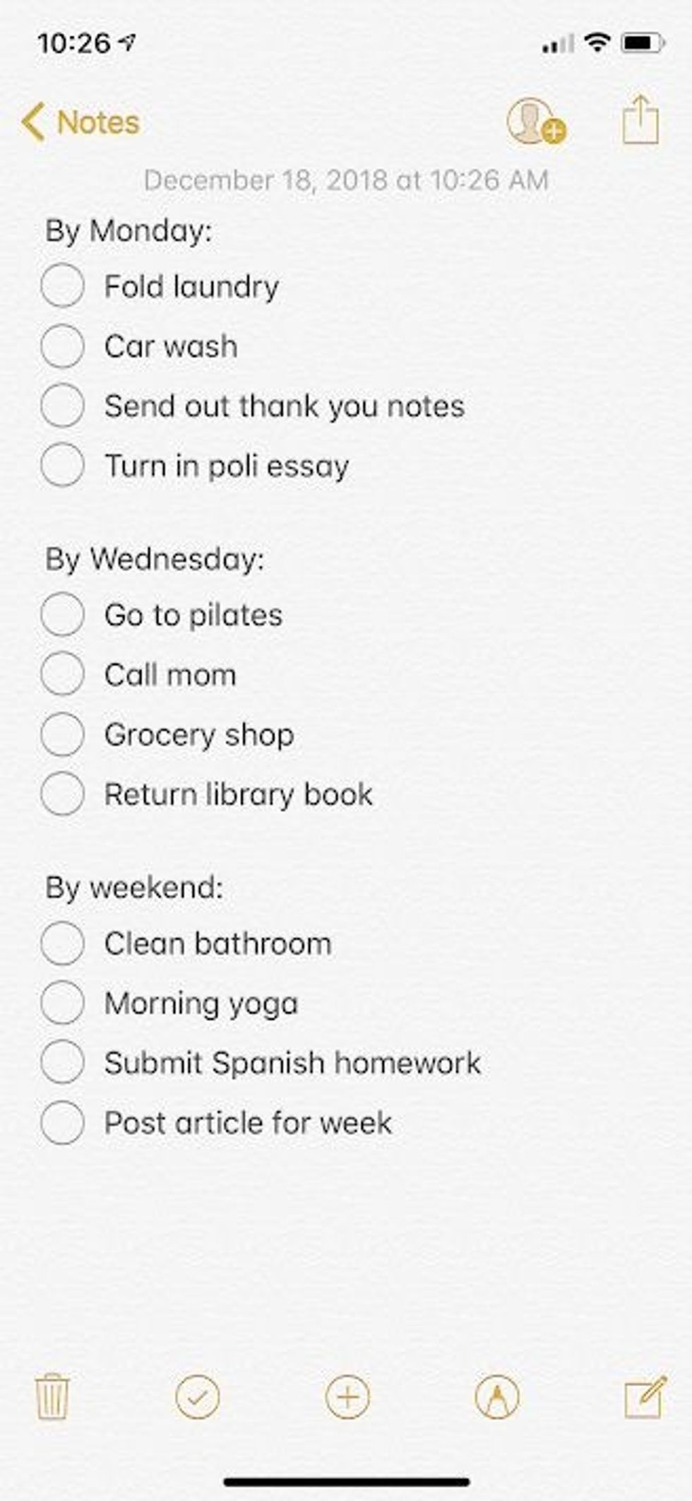I also am in love with the checklist feature on the notes app, because it just feels so satisfying to check something off my list.
