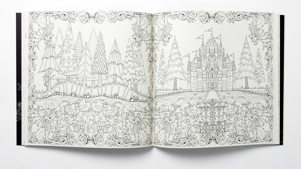 Basford’s second coloring book might be even more successful than her first in terms of beautiful pages to color. The book is filled with scenery images of exquisite tree houses, royal castles, and adorable woodland creatures.