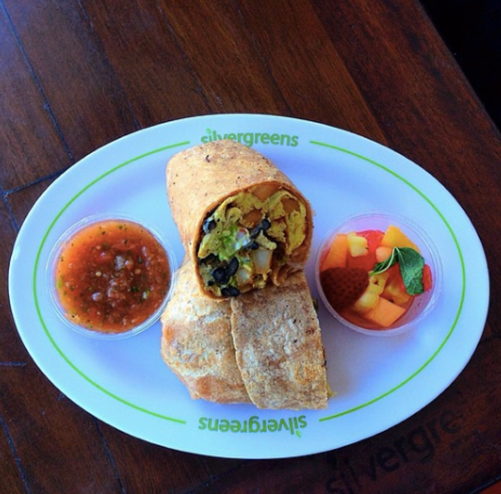 The fact that Silvergreens serves burritos is a hidden gem in IV. Better yet, they have four different types of breakfast burritos, all wrapped in whole wheat tortillas and served with homemade salsa and fresh fruit. You can even ditch the tortilla (pictured below) if you're trying to go for something healthier, but still delicious.
