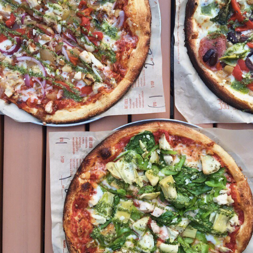Don't forget about the toppings, like pesto and arugala, that they have at the way end after your pizza has baked.