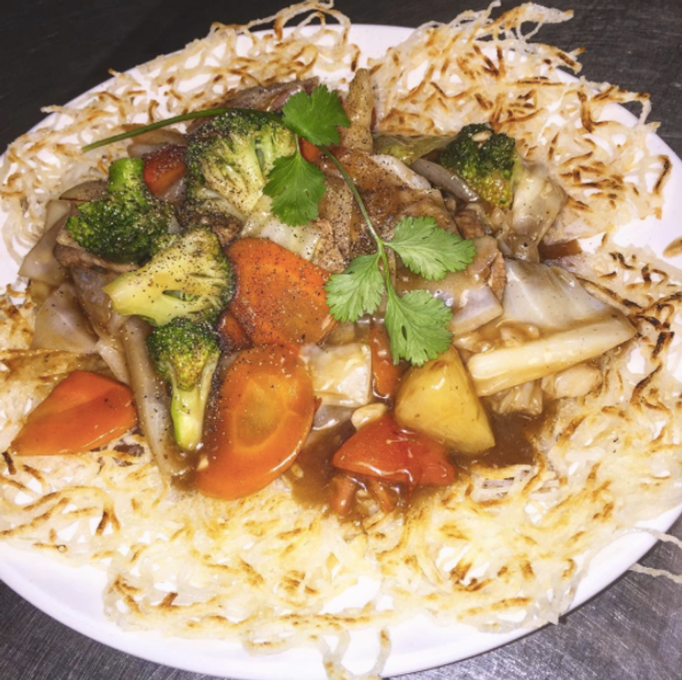What to get: Don't get too overwhelmed by all of the menu options! For an appetizer, get the Goi Ga. This Vietnamese salad consists of thinly sliced cabbage, cilantro, onion, roasted peanuts, and fried shallots and is topped with the most delicious nuoc mam dressing. Take advantage of the wide-ranging menu options and get the Pho Ap Chao as an entree- stir fried beef and veggies are seasoned to perfection and served over pan fried rice noodles.