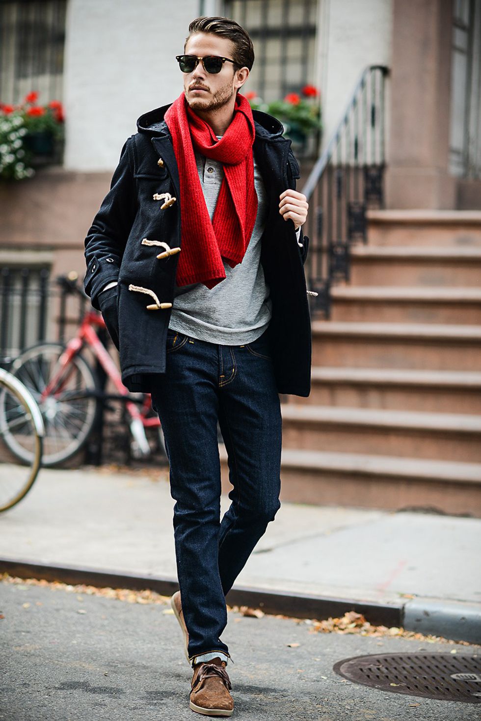 Wear scarves sparingly, gentlemen. As a general rule, I stay away from flowy scarves because they are a little feminine for me, personally. That being said, some people wear them very well. I prefer a chunkier scarf, if I wear one at all. The one thing to remember—and I know that some will disagree—is that you shouldn’t wear a scarf without a coat or vest above it.
