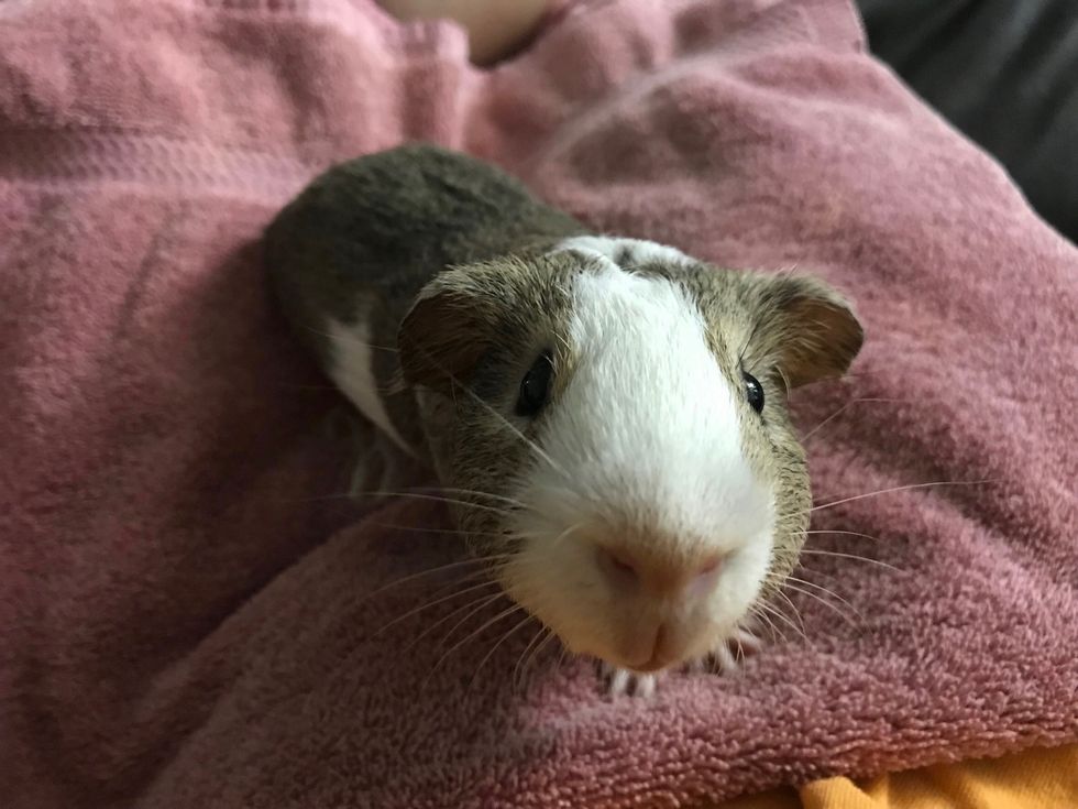 Guinea pigs squeak and purr to communicate. Leonard is a chatter box, especially when he is being held!