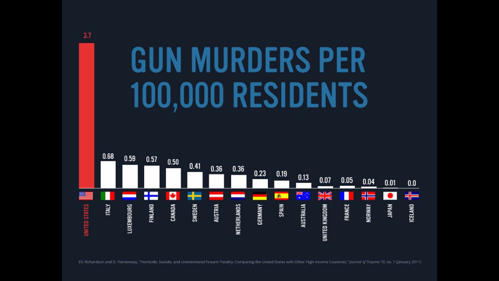 As mass shootings continue to plague our nation and selfish citizens continue to insist that their rights to own weapons trump the safety of our country, more and more people will grow tired of faulty policies and the government's inability to curb these statistics. Illegal firearms and weapons will always exist and will be acquired despite legal restrictions, but when other nations watch helplessly as America sinks deeper into a pit of chaos and murder, people begin to wonder: what's different here? Is there something about America's gun situation that makes it one of the deadliest in the world? Is there anything we can do to move toward a nation that addresses its violence and offers solutions? How many children will lose their lives to unchecked murderers in learning institutions that were supposed to protect and educate them? How many innocent people will walk down the street and end up critically injured in a pool of blood before they know what is happening? What will it take for our country to move away from a favoring for guns and focus on our society's well-being?