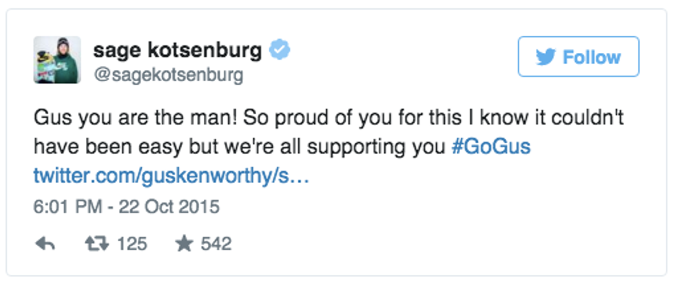 Gus Kenworthy knew that he was gay since about the young age of five. Two years ago, he confessed to his family and closest friends, who responded with unrelenting love and pride. This week, his social media community responded likewise. Fellow athletes and Olympians Tom Wallisch and Sage Kotsenburg reached out with support, along with Miley Cyrus, Michael Sam, Ellen Page, and others.