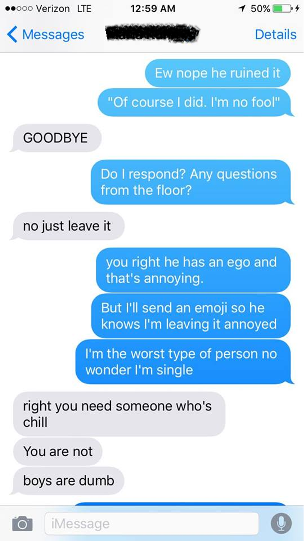 This response gave me mixed emotions. It did validate that this guy was, in fact, a tool. Also, I was confused on what he was even saying, so at this point, I consulted a friend for support.