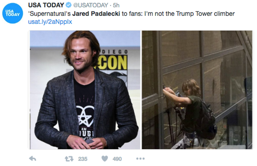 There was also some brief confusion when some "Supernatural" fans mistakenly believed it was Jared Padalecki who was climbing the tower.