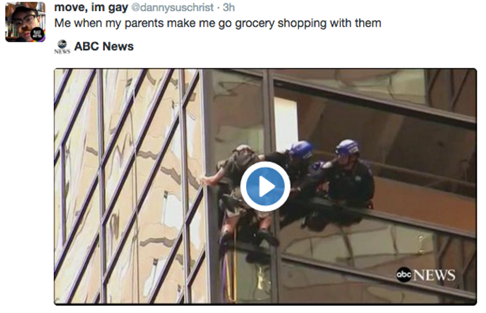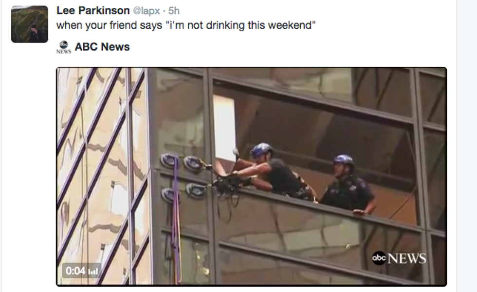 He made it to the 21st story of the building before cops finally seized him. Police officers reportedly spent several hours attempting to stop the man while crowds eagerly watched and recorded from below. They even positioned a big inflatable for Steve to land on in case he fell.