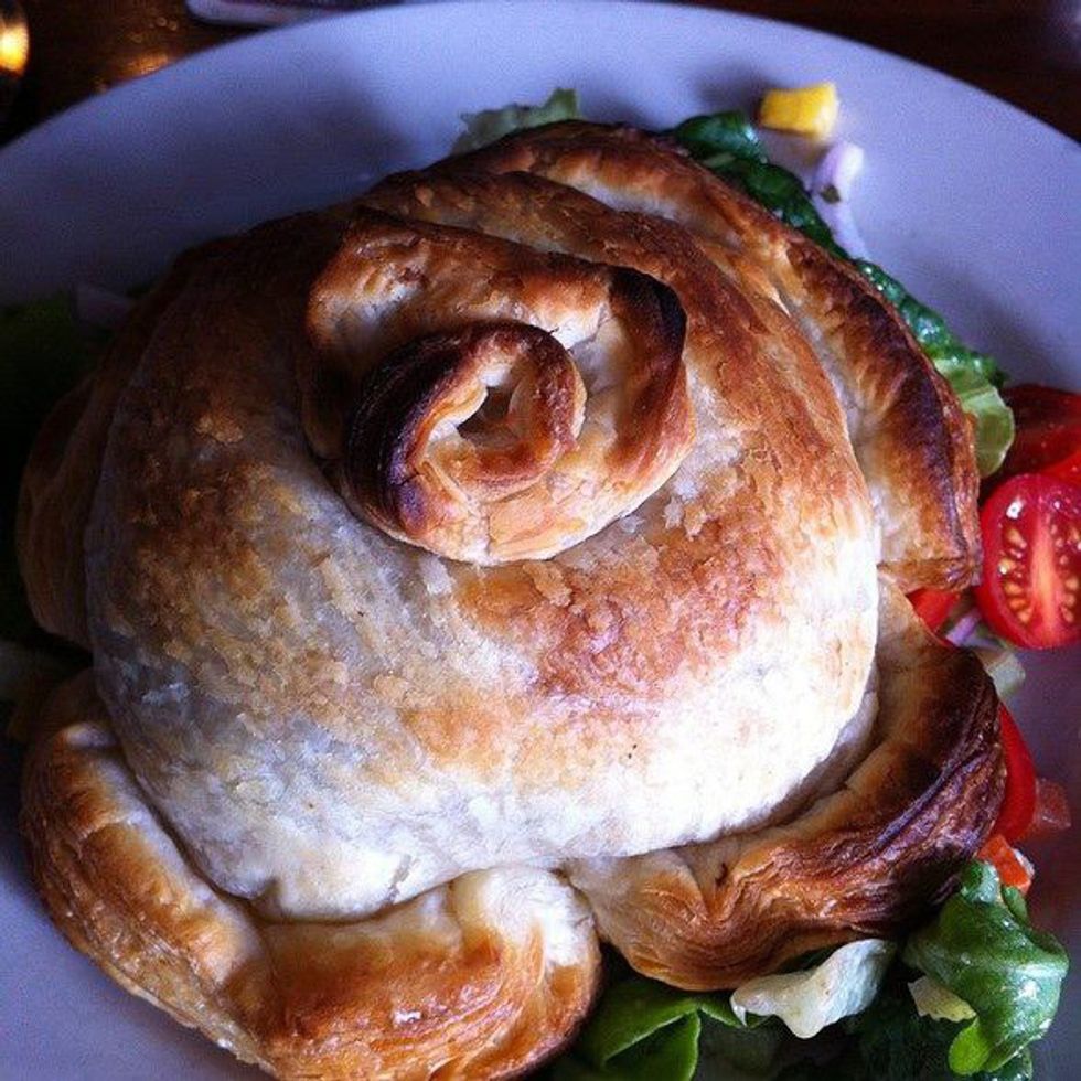 If you've eaten at any restaurant he's been to on "Diners Drive-Ins and Dives," they're not even that good. Some of what he eats looks actually disgusting. (See the chicken pie from season 17 episode 8, pictured above, that looks like a human female breast. While a breast is not disgusting, a food in the shape of a body part is just a little unsettling.)