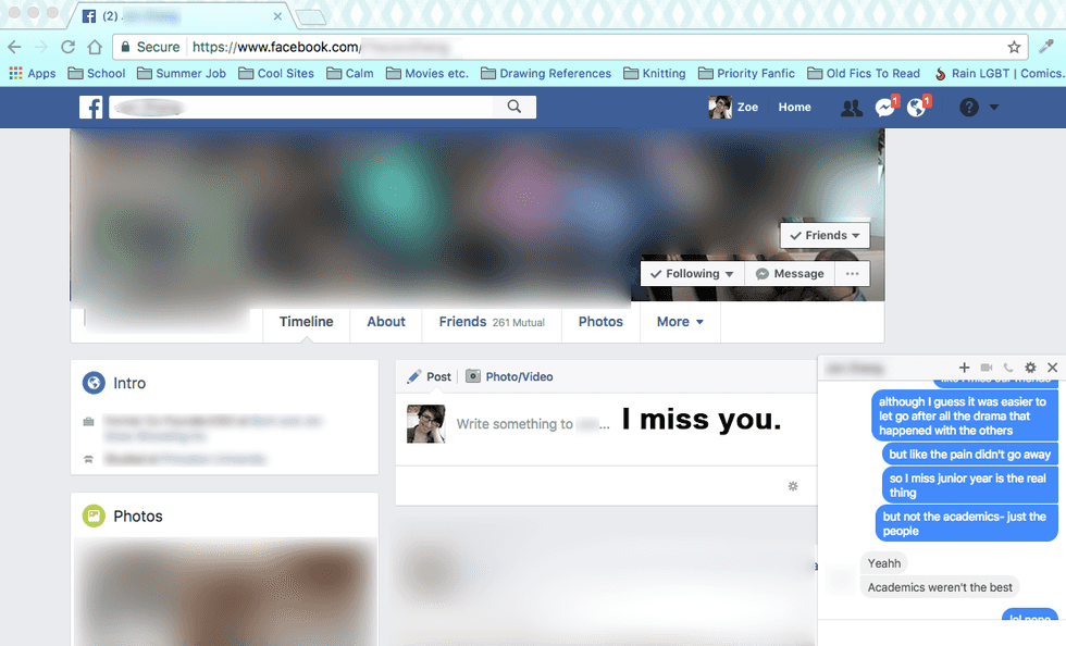 I still think about you a lot. I think that makes sense, considering we’re still friends on Facebook and I occasionally see your posts and tagged photos come onto my dashboard. Sometimes I genuinely think about pressing that “ignore” button on your profile, which I’m often dumbly searching through… but that still seems weird, because I used to call you my best friend.