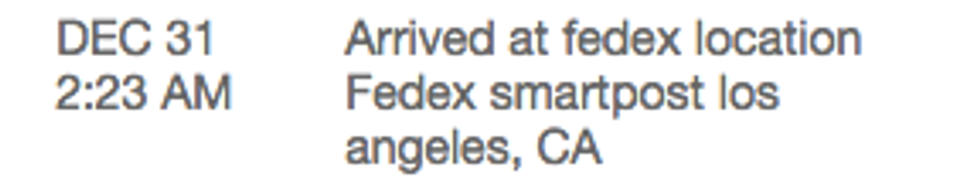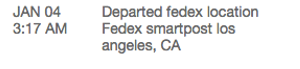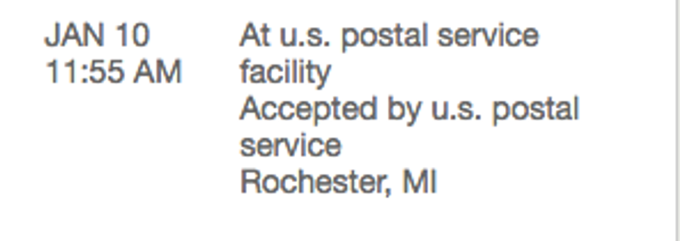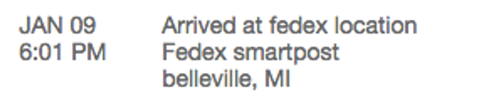 I decided that, since this is actually the first time I've ever tried to buy something online, I'll keep a daily journal and save the shipping updates like old concert tickets. This should be fun...
