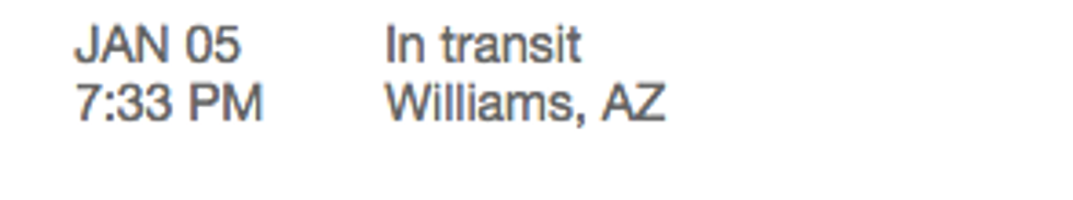Now we're getting somewhere! Williams, Arizona is some 400 miles closer but, essentially, not really anywhere. They do have a rodeo of some renown, maybe this was just a quick visit and they'll actually show up tomorrow.