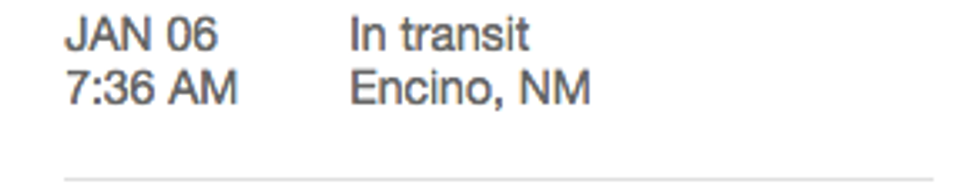 Well, I suppose that is better than Encino, CA. It's further East, at least. I'm beginning to suspect that my shoes will not arrive today. Maybe there's an airport there with a direct flight to Michigan.