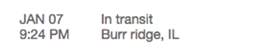 Well look at that, they've finally made it to my home state. Checking the map I see that Belleville is...about 40 miles closer. Are they being handed off, man to man, like an old school bucket brigade? Have countless, anonymous individuals placed their dirty paws on my new shoes? Will they still have that new shoe smell?