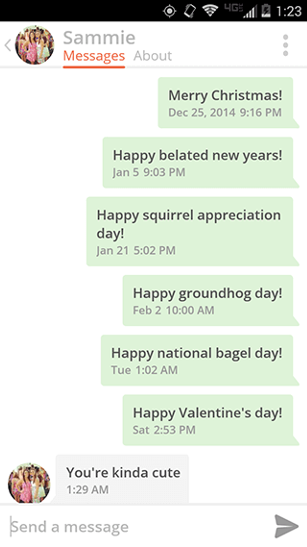 These guys are awesome; they send you a message and its hilarious. You can't help but laugh at their cheesy pick-up lines that they send you.