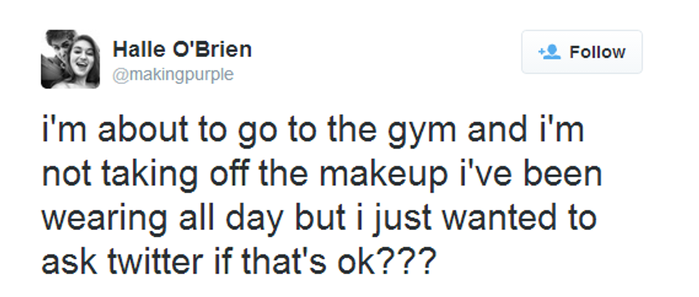 Lately I've been hearing and seeing lots of comments ridiculing girls who wear makeup to the gym. I do have a similar anguish when I see that girl walk by with a full face of makeup without a drop of sweat. Yes, you know exactly the girls I'm talking about.
