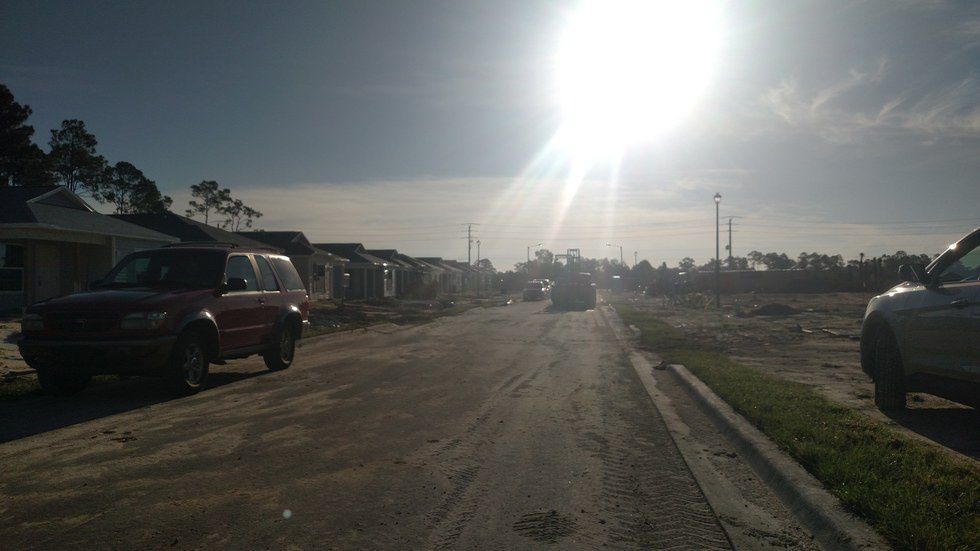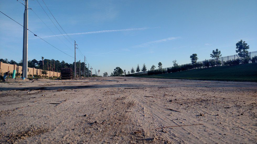 The road is empty outside of the HFH Collier County build site. Construction for a new Habitat Collier community is tucked away at the end of a dirt road, which is framed by two larger developments.