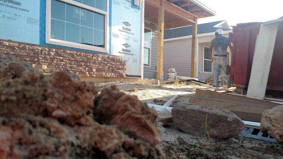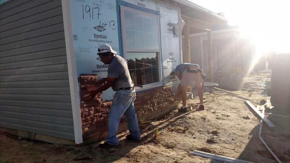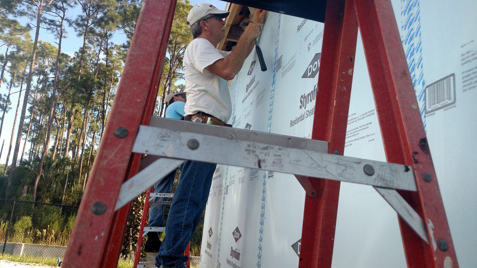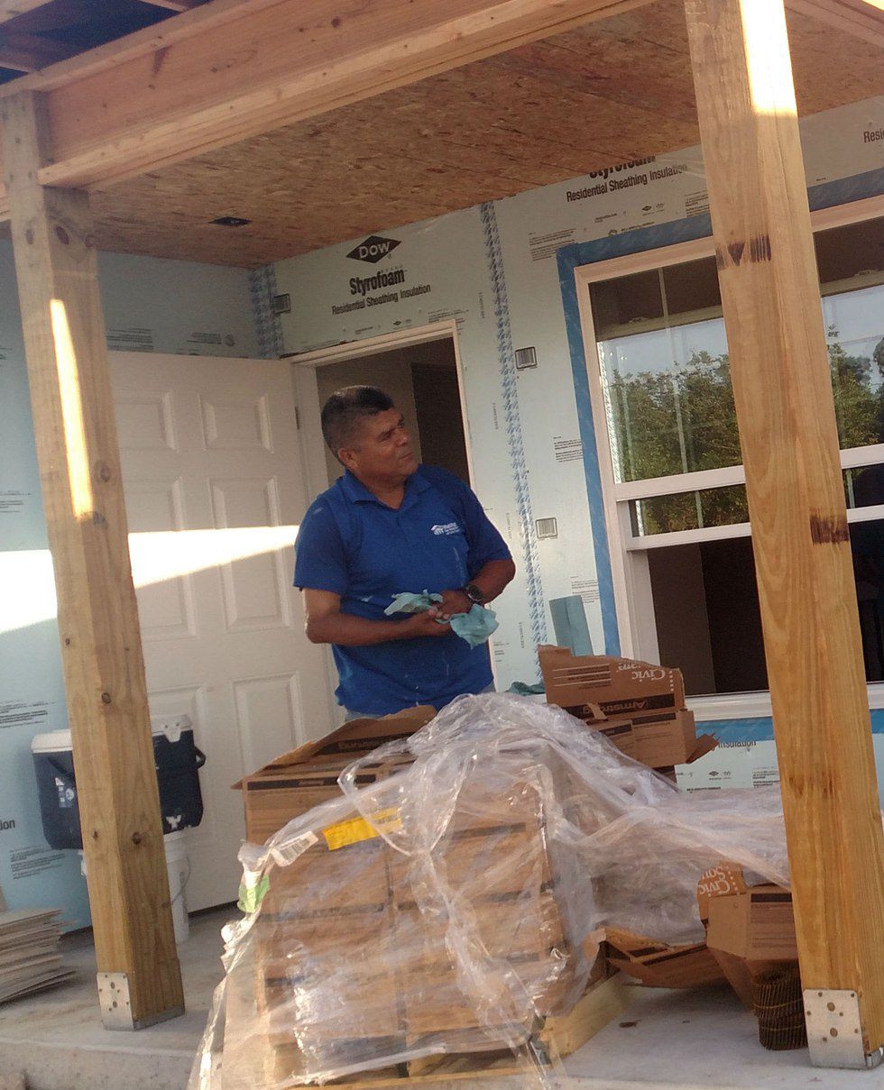 Julian Gonzalez stands waiting for his partner to work on the brick details. According to the Habitat Collier website, Gonzalez was a volunteer who became a Habitat resident and later was hired as a full-time construction staff member. Gonzalez recently paid off the mortgage on his Habitat home.