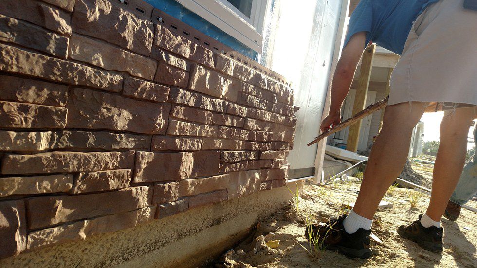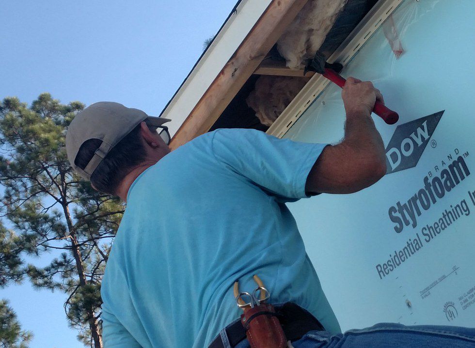 Michael Pastir, construction staff, installs siding on the house next door. Pastir, a seemingly quiet man, worked hard by himself while most others worked in buddy-systems or with a larger group.