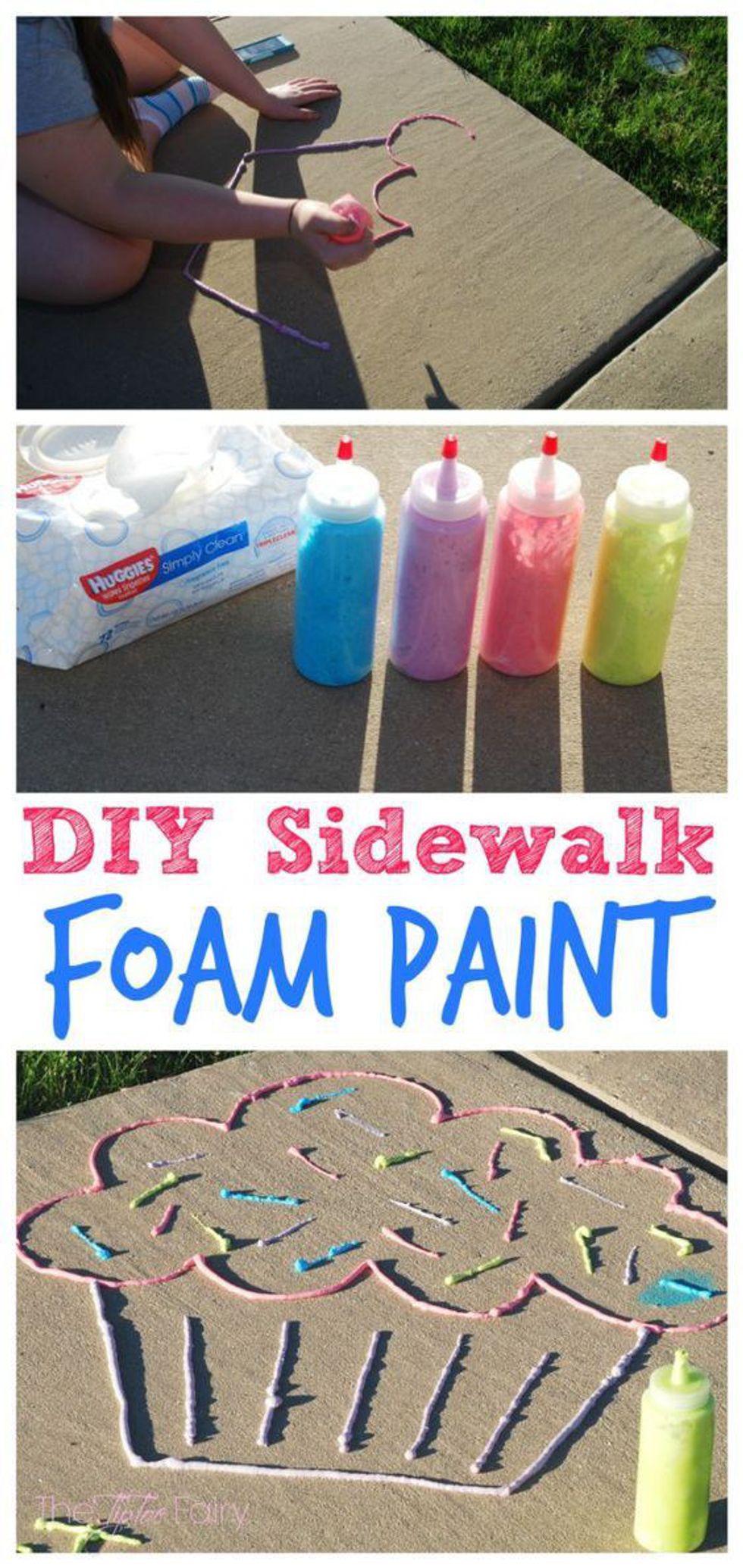 Something we want is for our kids to be outside, we want them learning in new ways and helping all kinds of learners excel. A hack for outside creativity and for all learners' special needs, visual, hands on is using foam sidewalk paint that you create yourself and doing math or spelling outside. Below is the recipe to make your own: