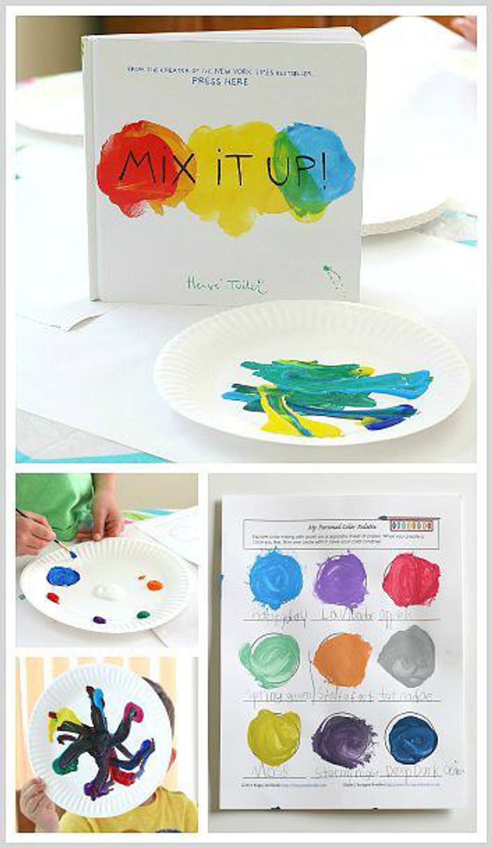 With young students its essential for them to learn by doing and what better way than making their own paint and learning what colors mix to make another color. Using the book below helps students with the mixing of colors and the second picture is directions on how to make your own paint.