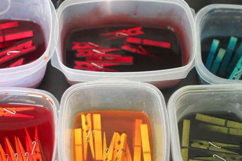 Whether observing or student teaching there is a chance you have seen close pins with the students' names on them, a great DIY for teachers to make colorful close pins is dying them in RIT dye. This could make for colorful pieces in the room or for color coding groups. It beats coloring them individually.