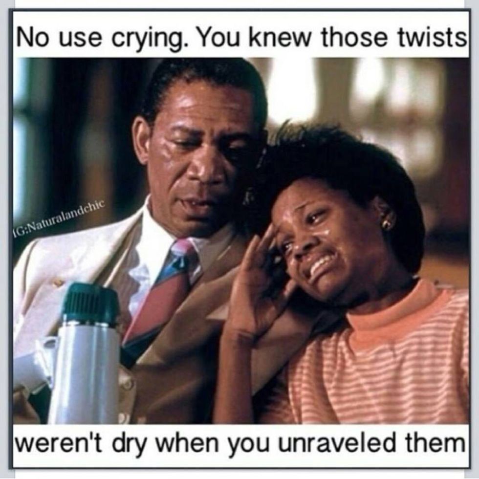 As much as I wanted an excuse to talk about my own hair journey in this article, I also want to write about something that would make people go, “Girl, same!” A lot of people only see the glorious crowns that are results of a twist out. Little do they know what we go through just to achieve our nappy glory. Here’s a few examples of what the struggle looks like: