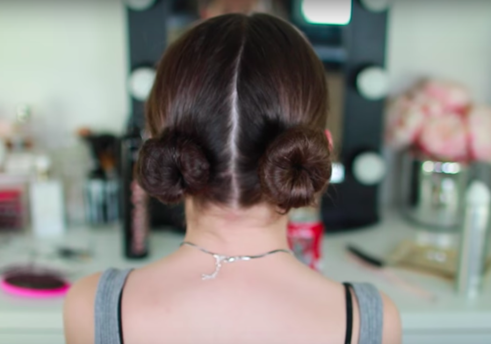 Another half up/half down look, but this time with two buns. Not all people can pull this off, but on days where you are feeling a little adventurous, this works perfectly with any outfit really. It also could be a conversation starter.