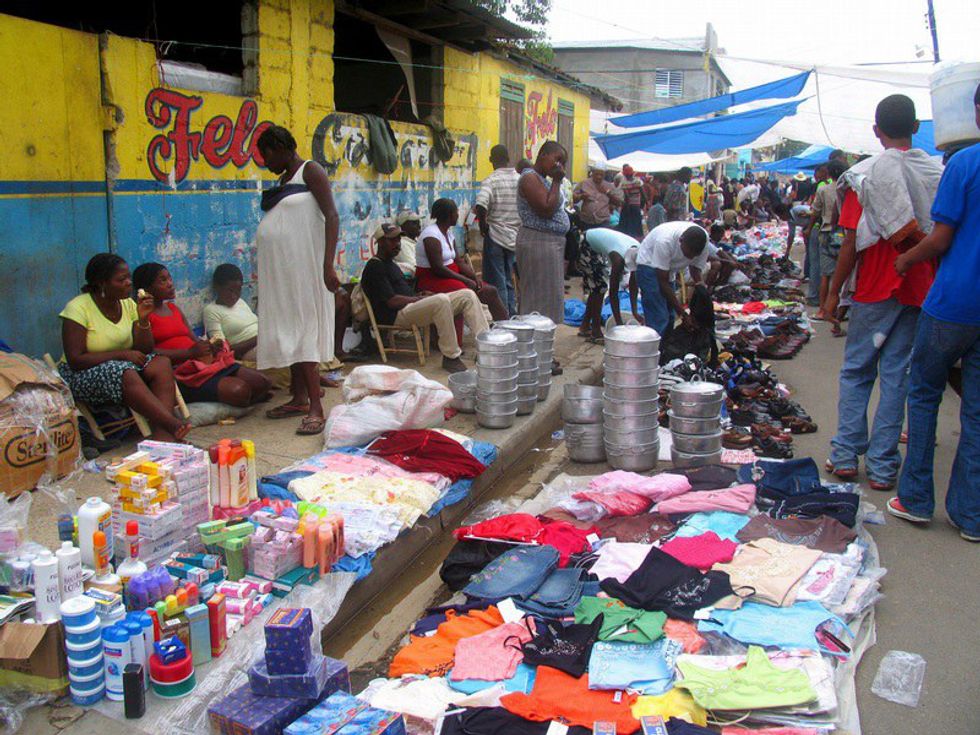 Every Monday and Friday, the border between Haiti and the Dominican Republic opens up in the city of Dajabón over the Massacre River. From 8 a.m. to 2 p.m., Haitian vendors are allowed over the border into the Dominican to sell their goods. The vendors occupy stalls in a huge concrete building built for exactly this event. Those who can't afford a spot in the building sit on the street with their items spread out on the ground, and the organized chaos of market day extends for about a half mile from the bridge separating both countries. It is not a place for the claustrophobic or the faint of heart.