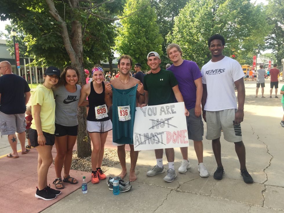 I have my friends Kathleen and Phoenix to thank for part of the inspiration. A group of friends I had in high school (Karina, me, Kathleen, Phoenix, Zach, Colby, and Karter from left to right) went to Okoboji, Iowa to watch Kathleen and Phoenix run the half marathon there. We all woke up early and ate together, and sent them off at the finish line. Karina, Zach, Colby, Karter, and I drove from stop to stop to cheer on our friends, and then met them at the finish line. They both have been passionate about running for as long as I've known them (even as elementary schoolers they loved it) and something in me was like, "I have to do that". When I first told my mom I had decided to do it, she didn't believe me. She gave me a look that said, "Who are you and what have you done with my daughter", but told me if that's what I wanted to do then I should do it.
