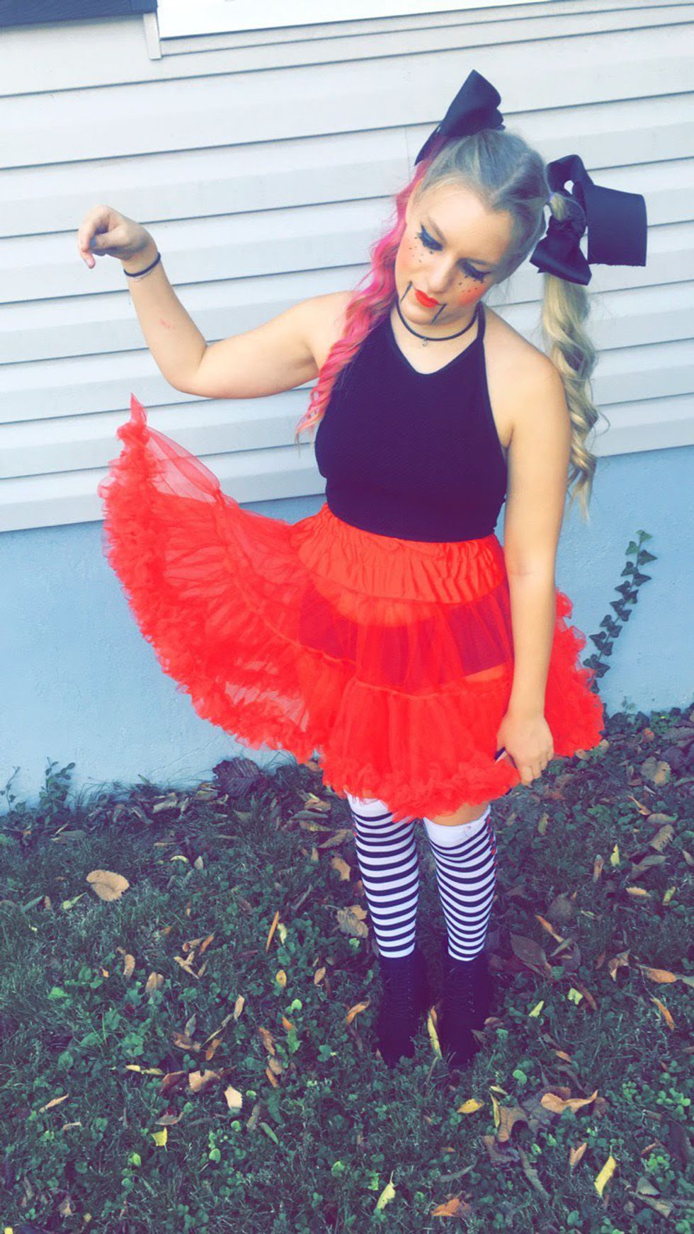 Okay, let's first acknowledge (again) the reliability of the tutu. It can't be denied that Michelle's striped socks, black ribbons, pink hair, and creepy makeup (which is dope af) each contribute to the demonic doll vibe she's got going on. She doesn't have to worry about smiling when posing for pictures because she's got the dark soul role down. However, it's clear that the tutu stole the show. 'Twas the main event. It adds to the "I'm not gonna smile because I'm a demon, but I like to party" vibe.