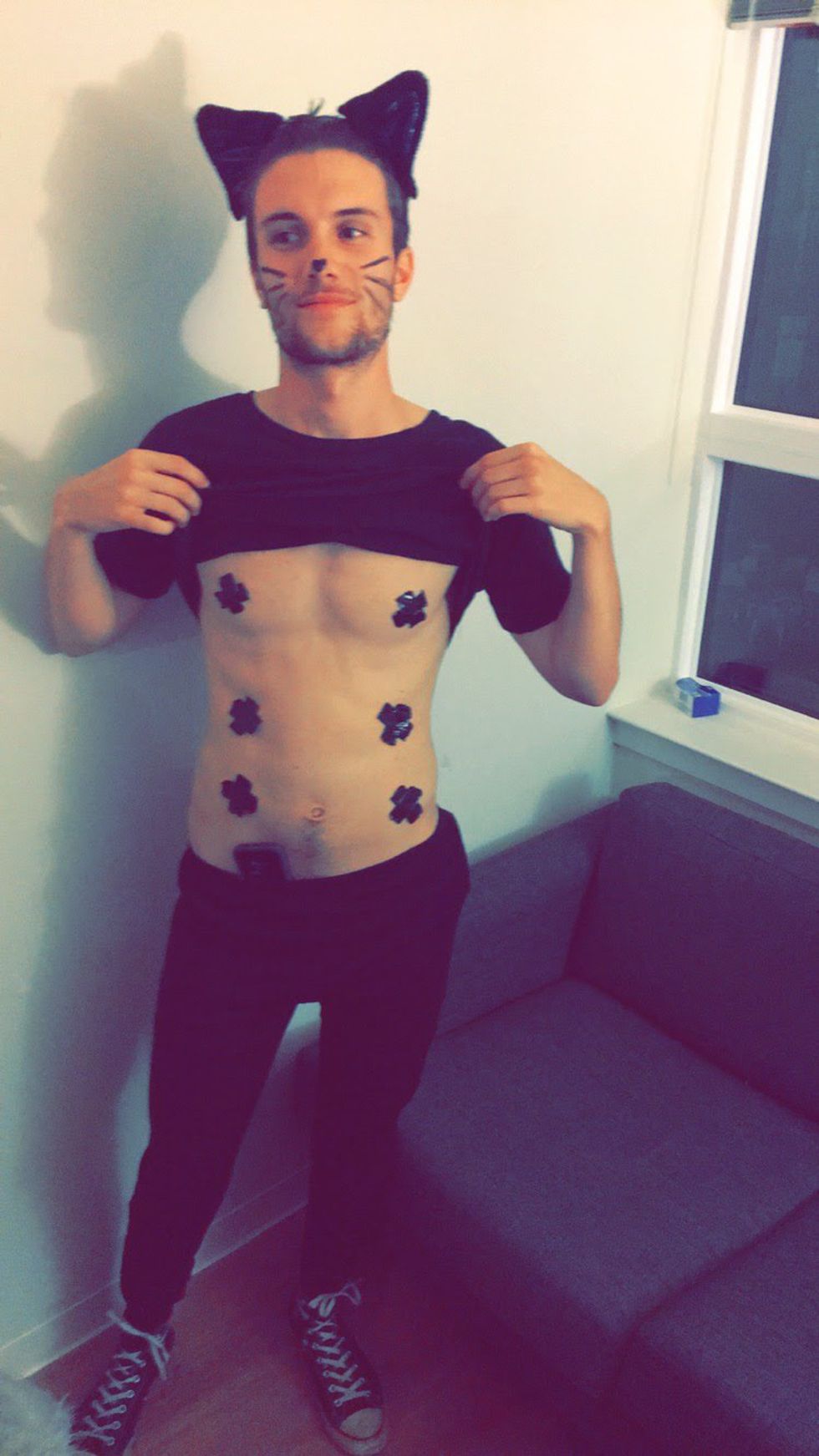 Let's all take a moment to give this man a round of applause for his dedication to his character. From past Halloweekend experiences, I've learned to associate cat costumes with extremely high levels of basic-ness. This dude challenged that norm. He took the typical "sexy cat" persona to a whole new level and owned tf out of it. Not only did he exceed all of our expectations, he's challenged gender norms. When I asked him what inspired him to choose this costume, he simply told me "mama cats have a lot of nipples" and that he wanted to "appreciate the girl cats." You go dude. High five for feline feminism. Meow.