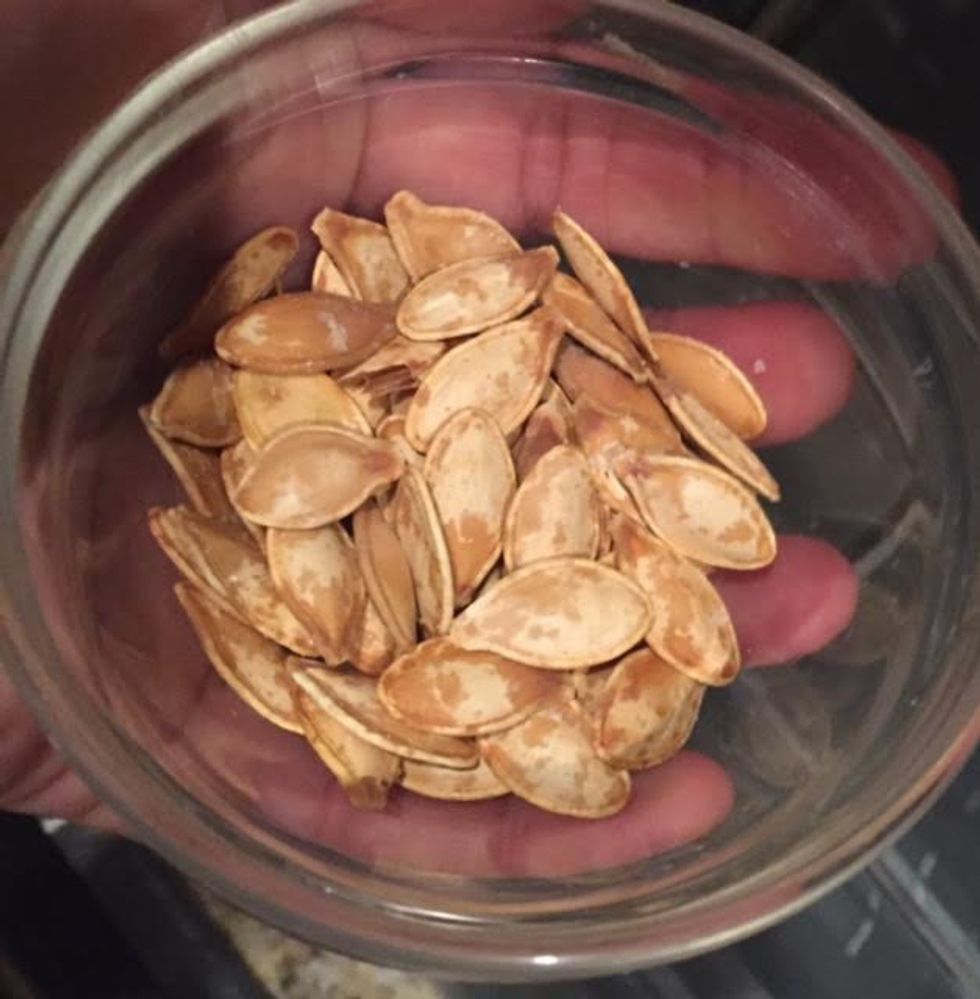 With Halloween upon us and jack-o-lanterns on our doorsteps, it’s time of year for one of my favorite snacks! No, I don’t mean seasonally festive candy (although that’s a plus too). I’m talking about delicious home-cooked pumpkin seeds!