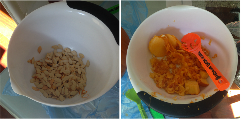 1. Carve a pumpkin! Clean it out well, and separate the guts from the seeds