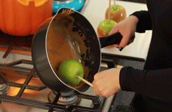 Get messy and make some caramel apples. You can also buy sprinkles or any other edible decorations to make your apples more festive.