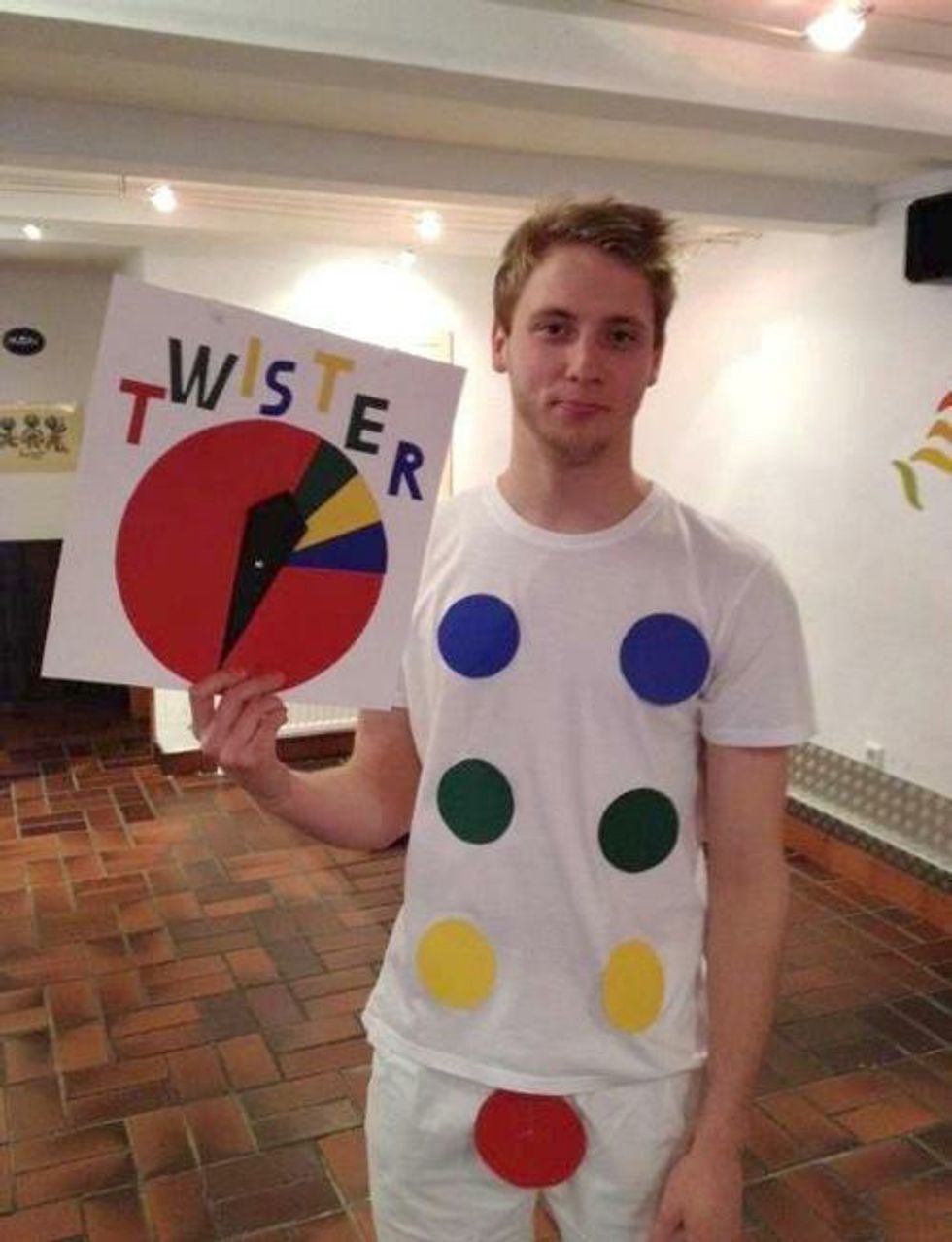 This is a subtle inappropriate costume for Halloween. To play twister you must spin the wheel and place your hand on whatever color you get, with this outfit you better hope you're a good spinner.
