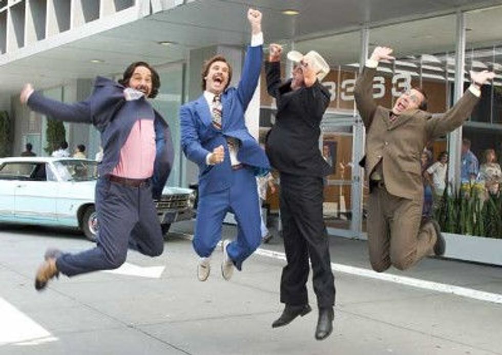 If you want to go all out with a group costume, the Anchorman cast is perfect for you and your crew! Just find some old bright dress suits, wear some fake mustaches and one person wear a cowboy hat to signify that they're Champ Kind.