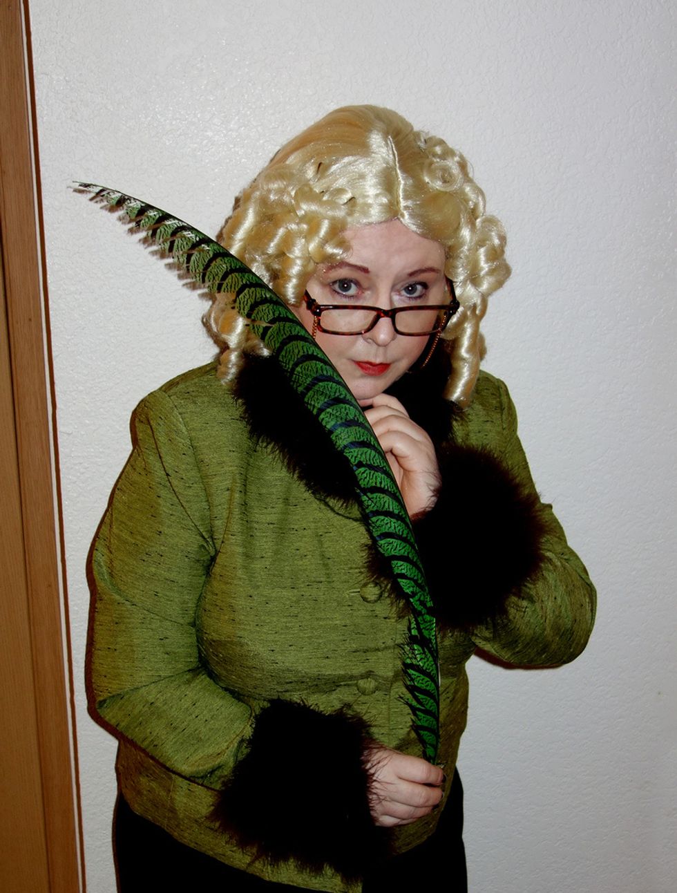 Blend your love of journalism and Harry Potter with dressing up as Rita Skeeter, the witch journalist who specializes in poison-pen stories! (I guess modern day fake new.. who knows?) You can get any green skirt suit and pin fuzzy material to the arms and collar. Also, make sure to get a blonde curly wig, glasses, and a long quail feather to signify Skeete's quail pen.