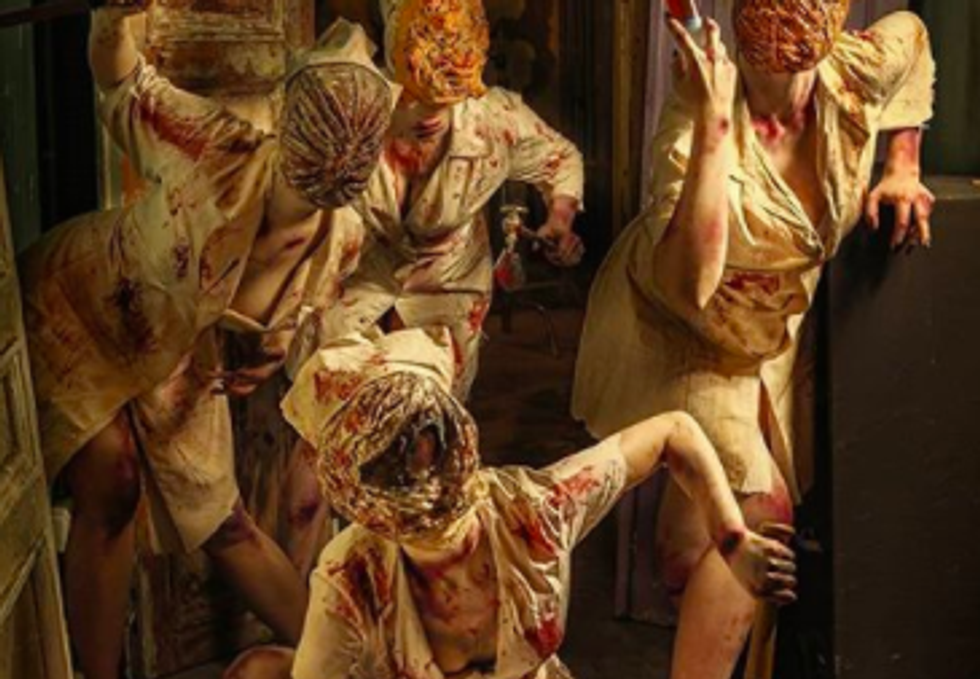 The Silent Hill nurse costume works well with a mask because the face of the character/this costume is completely covered in gauze!