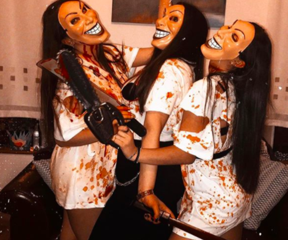 Wear a flattering dress or anything that makes you feel pretty, then put on a mask from The Purge and you'll instantly be spooky.