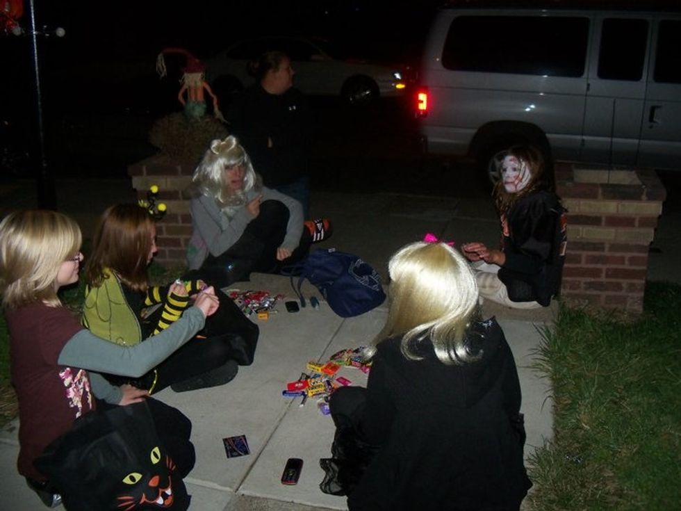 Once you were done trick or treating you came home and hung out with your friends outside seeing how much and what kind of candy you got this year.